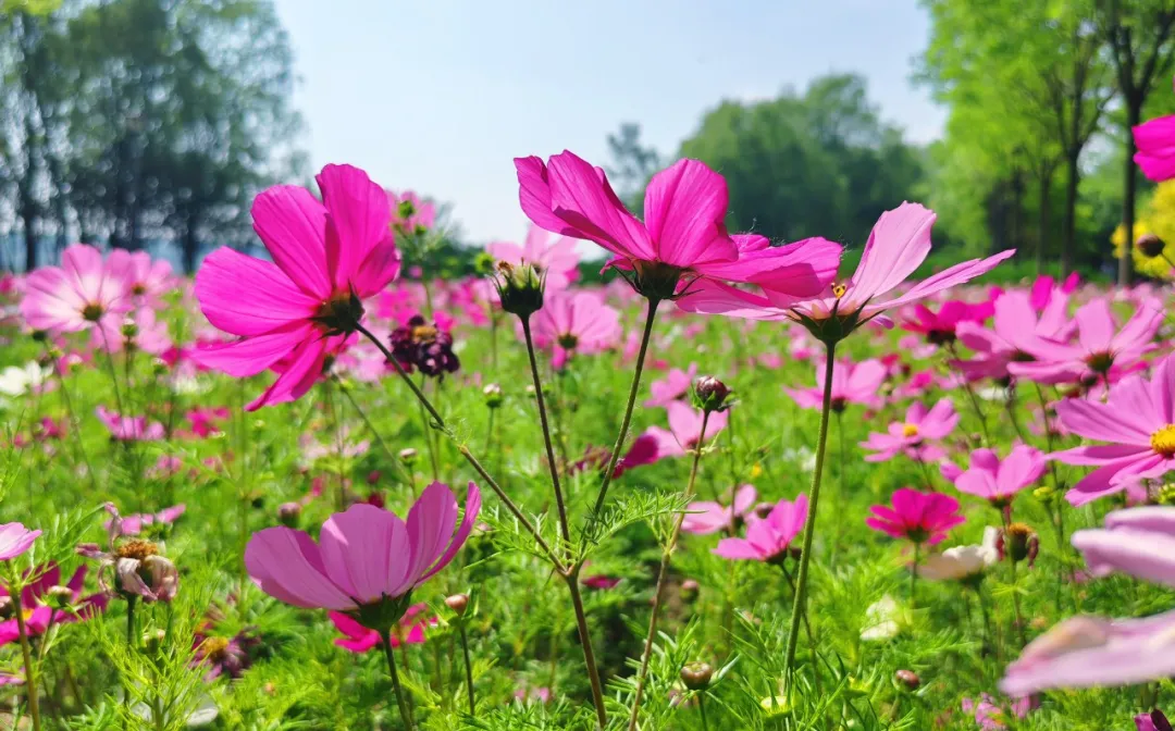 置身绚烂花海中,每一朵波斯菊都像是一个小小的太阳,温暖着你的心房。