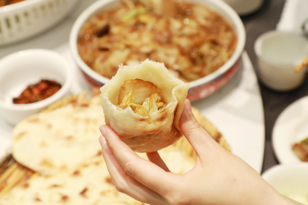 除了炖大鹅,东和居的有机蔬菜炒小米、锅贴饼熬白菜、韭菜炒河底“翻牌率”都很高。会吃的粉丝们又来支招了:“把白菜或者河底肉塞进饼子里,自制口袋饼也好吃。”