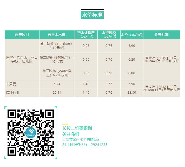 现行水价(泉州水务)