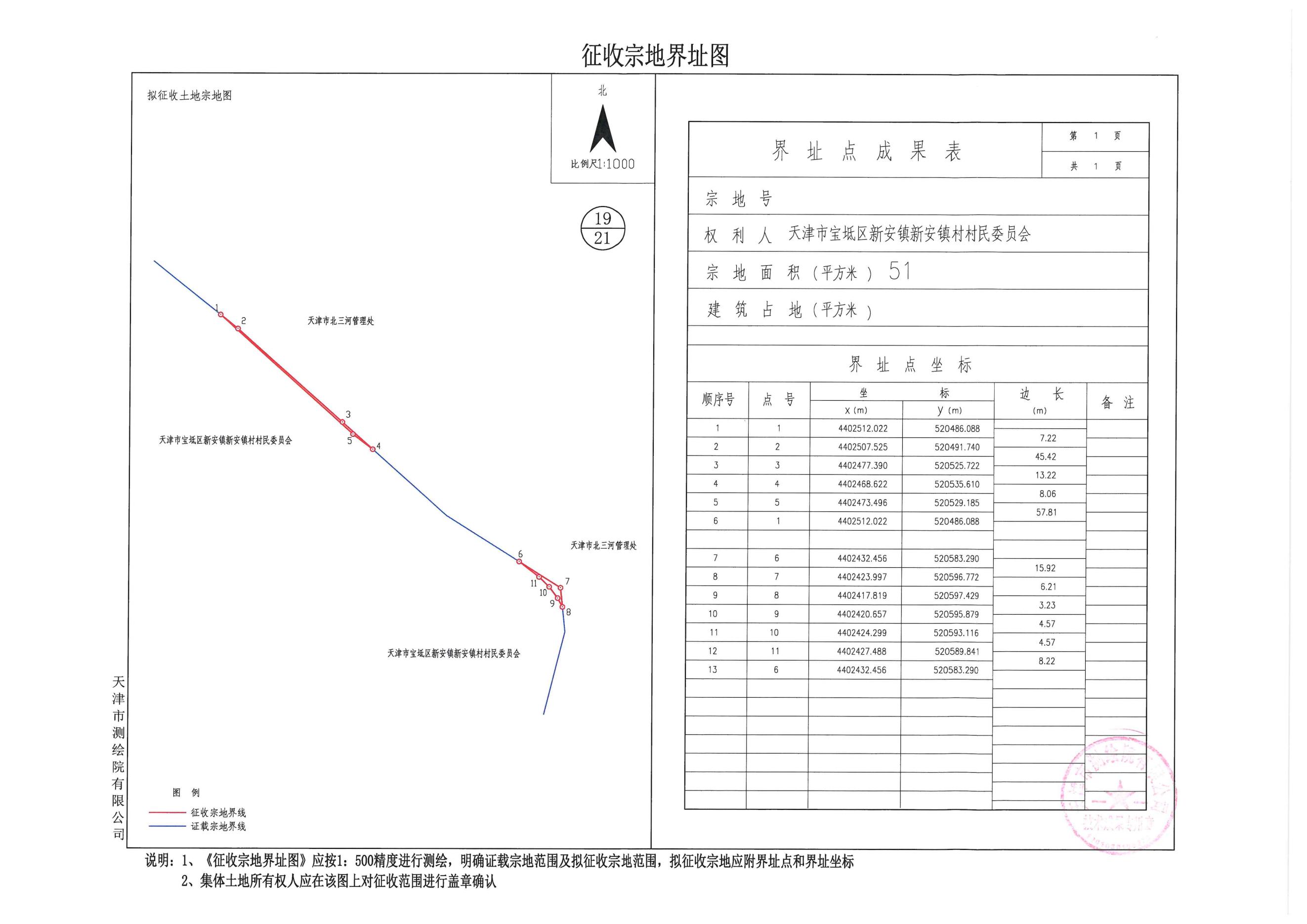 根据《中华人民共和国土地管理法》《中华人民共和国土地管理法实施条例》《天津市土地管理条例》等法律法规规定,为了公共利益需要,拟征收亚洲博彩app 新安镇新安镇村0.0051公顷(合0.0765亩)。现就征收土地补偿安置方案主要内容公告如下: