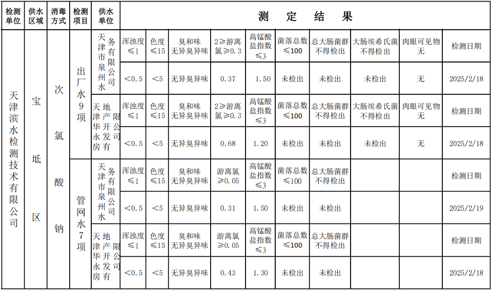亚洲博彩app 2025年3月份水质检测公示(2月份水质检测结果)
