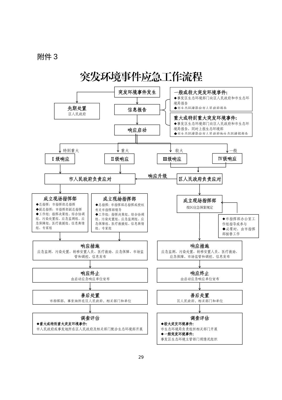 发生特别重大突发环境事件时,由市指挥部组织开展应对处置工作,区指挥部进行先期处置并及时上报相关信息。
